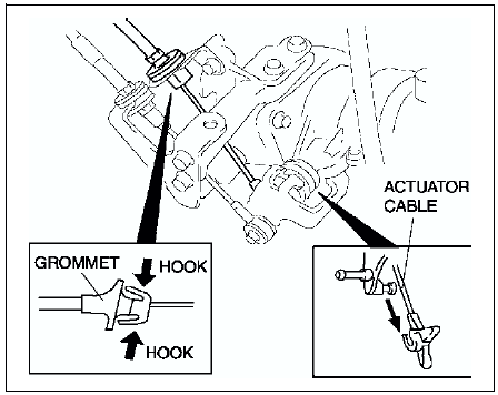 5. Squeeze the hooks of the grommet, and remove the actuator cable.