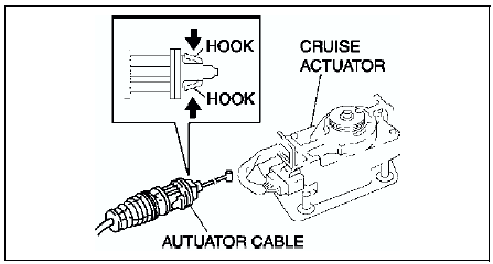 7. Remove the end fitting of the actuator cable from the cruise actuator.