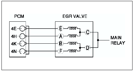 - EGR valve terminal A (harness-side) and PCM terminal 4H