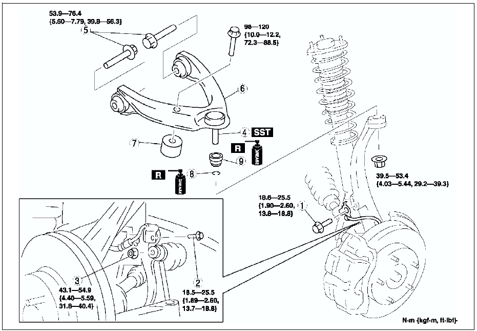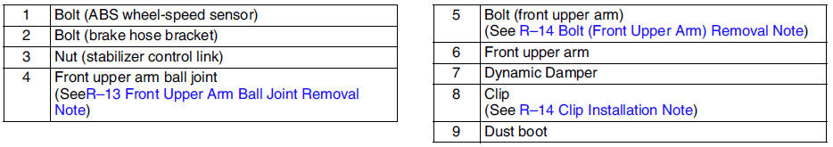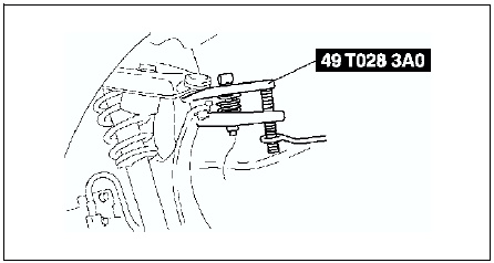 1. Remove the nuts (3 locations) from the upper part of the front shock absorber.