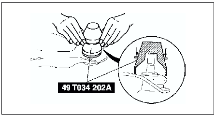 2. Pull the front shock absorber and coil spring out of the way, towards the outer side of the vehicle.