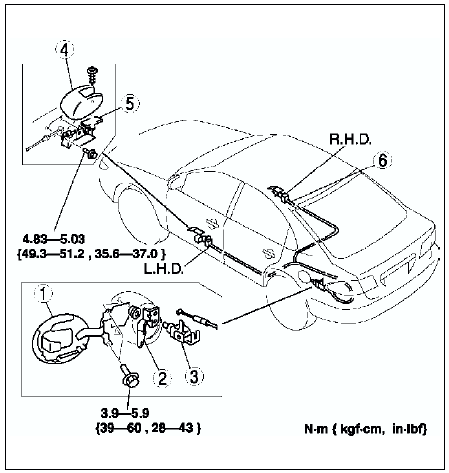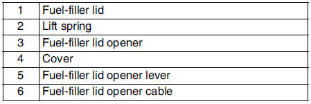 1. To remove the fuel-filler lid opener, remove the left side trunk side trim (4SD) or trunk side lower trim (5HB).