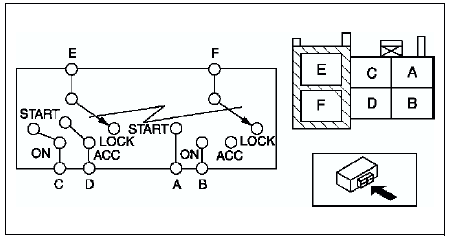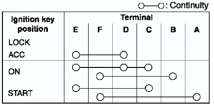 4. Inspect for continuity between the ignition switch terminals using an ohmmeter.