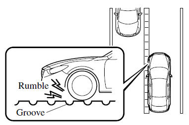 *1 A rumble strip is a series of grooves in the road pavement surface positioned at specific intervals, and when the vehicle passes over it a vibration and rumble sound is produced which alerts the driver that the vehicle is departing from the lane. The rumble sound is a reproduction of the sound which occurs when a vehicle passes over a rumble strip.