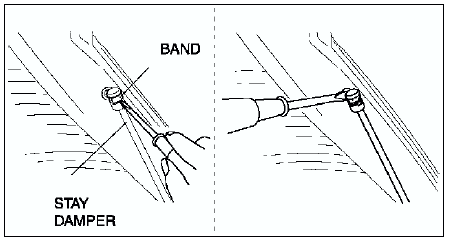 6. Pry out the connecting part of the stay damper and the hinge with a screwdriver to disconnect them. Then remove the stay damper.