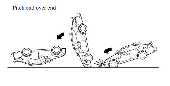 The following illustration is an example of an accident that may not be detected as a rollover accident. Therefore, the front seat belt pretensioners and curtain air bags may not deploy.