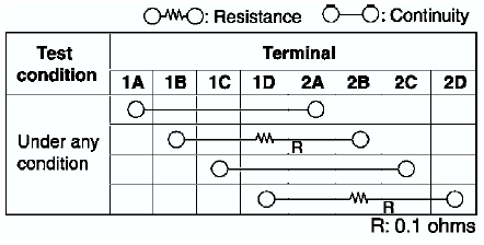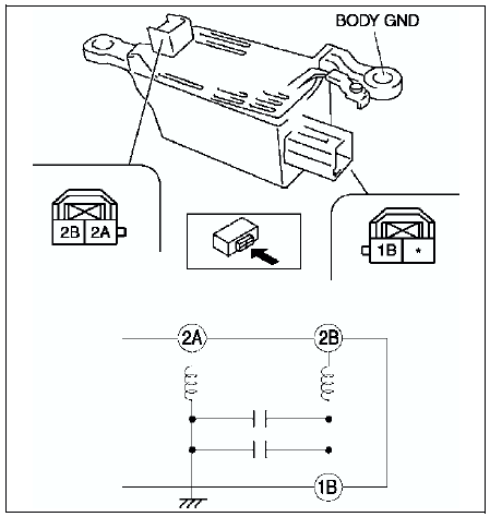 1. Inspect for resistance and continuity between the noise filter terminals using an ohmmeter.