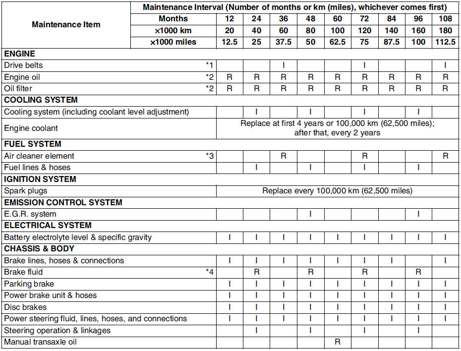 *4: If the brakes are used extensively (for example, continuous hard driving or mountain driving) or if the vehicle is operated in extremely humid climates, change the brake fluid annually.