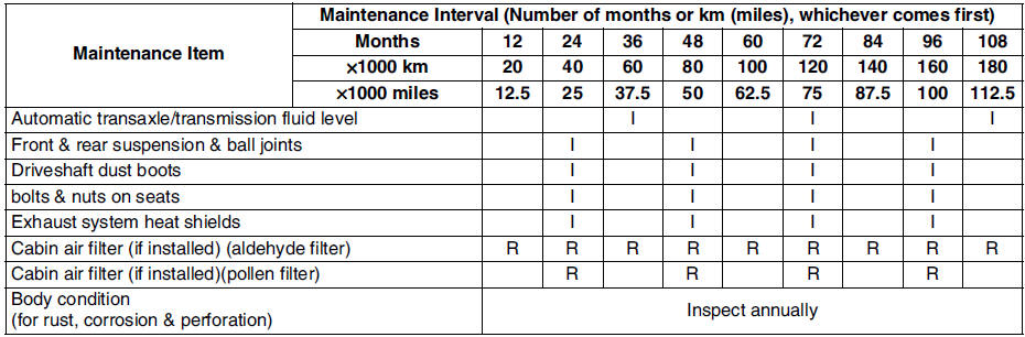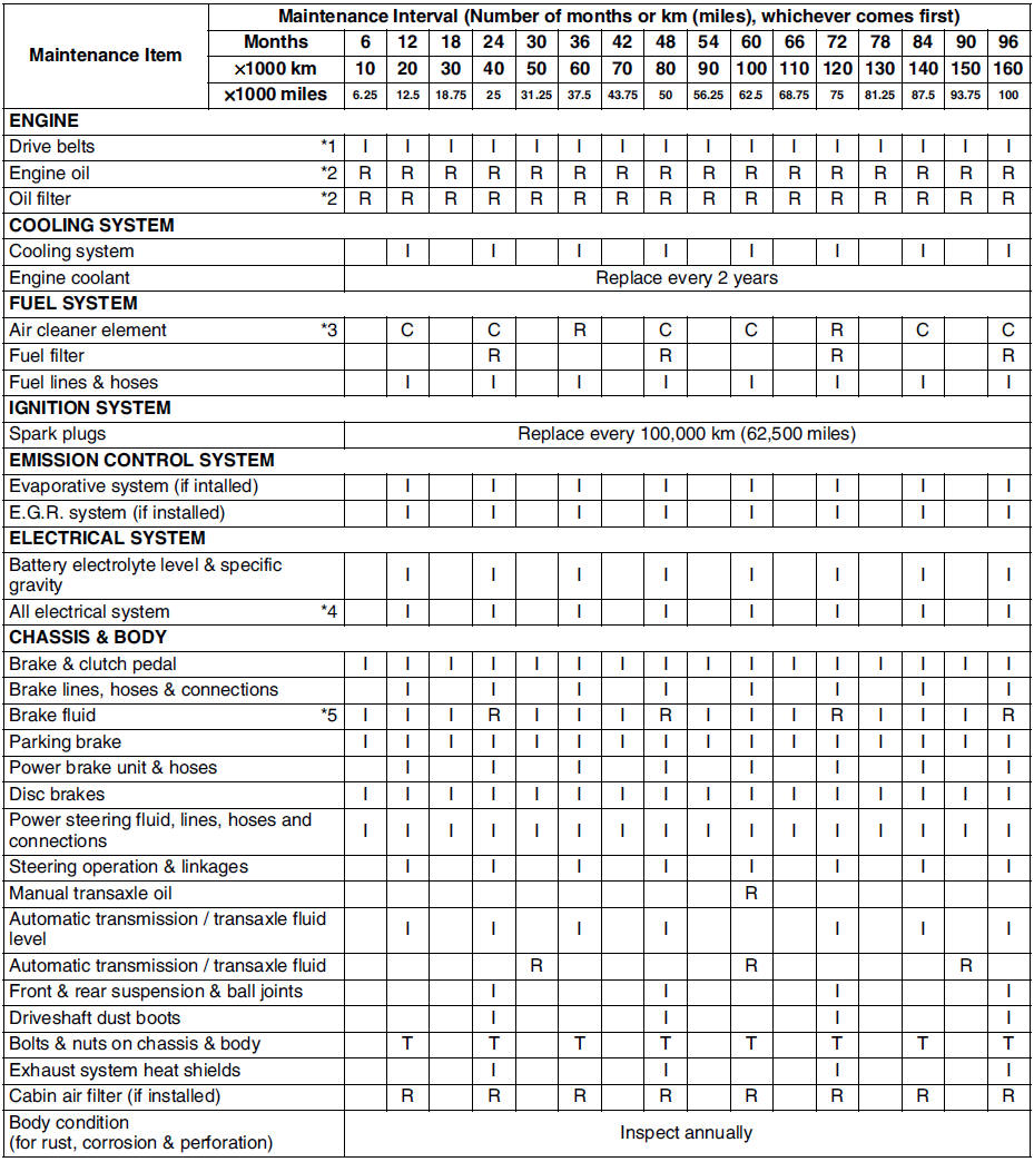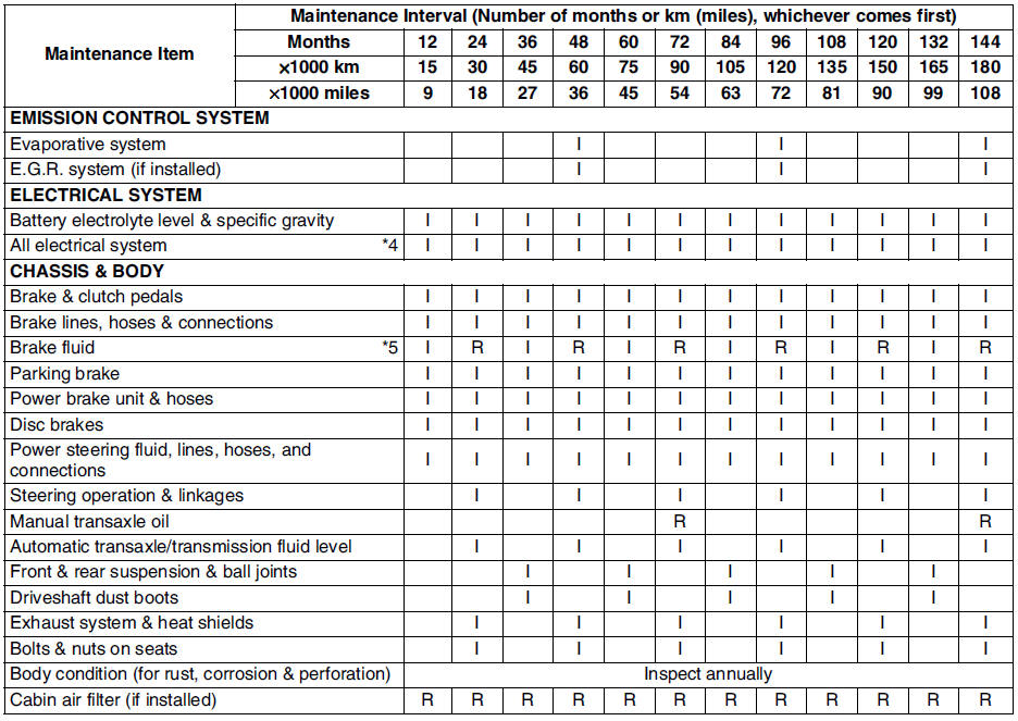 *5: If the brakes are used extensively (for example, continuous hard driving or mountain driving) or if the vehicle is operated in extremely humid climates, change the brake fluid annually.