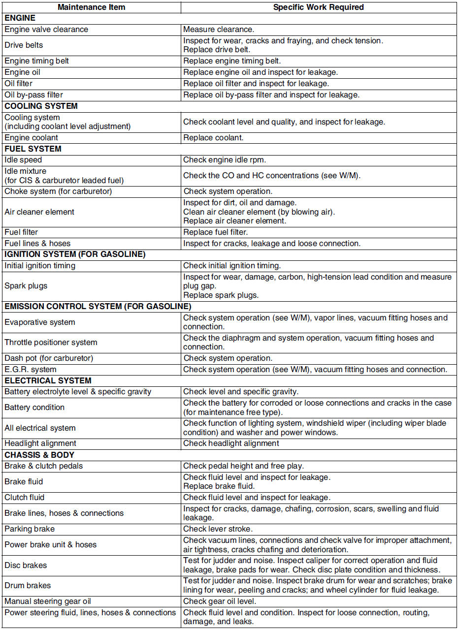 *3: If the vehicle is operated in very dusty or sandy areas, clean and if necessary, replace the air cleaner element more often than the recommended intervals.