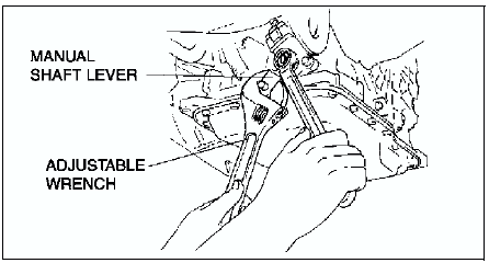 5. Set the adjustable wrench as shown to hold the manual shaft lever.