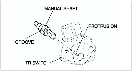 11. Install the TR switch while aligning the protrusion and groove as shown.