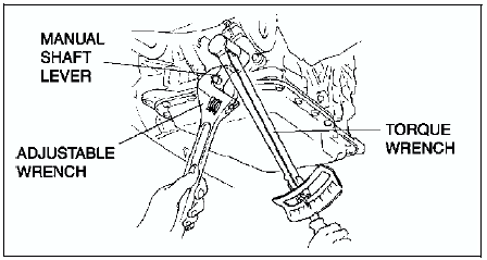 16. Set the adjustable wrench as shown to hold the manual shaft lever, and tighten the manual shaft nut.