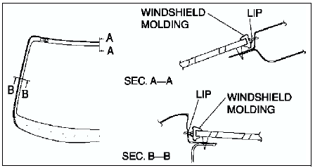 6. Cut the lip of the windshield molding using a razor.